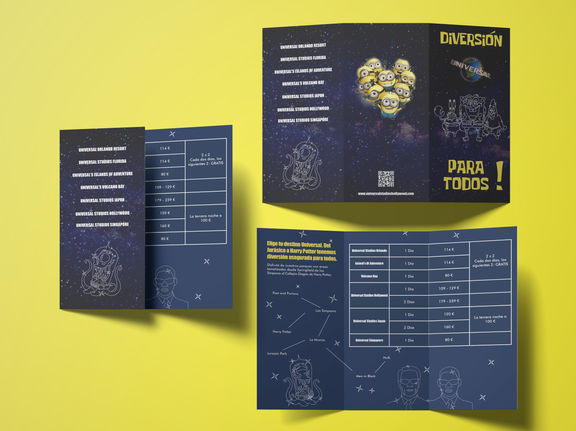 Tríptico para el parque de atracciones de Universal Studios, bajo las premisas de ser atractivo y claro en cuanto a la información.